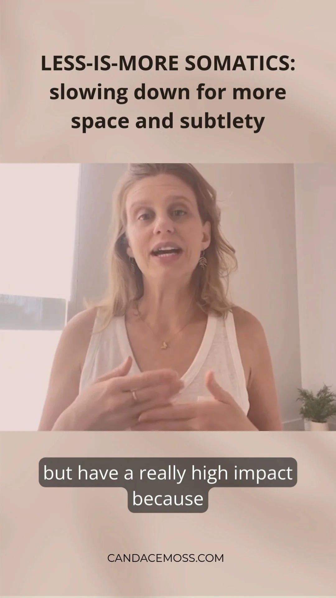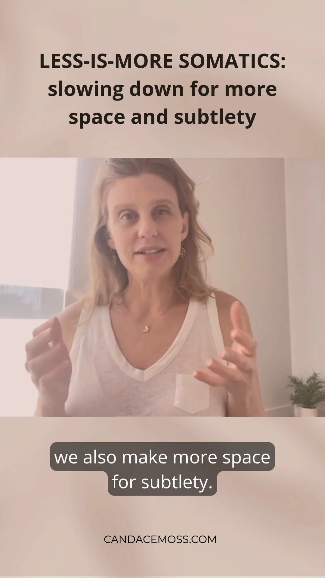 “Candace’s somatics classes have been one of the few times in my life that I have felt positive sensations in my body. After being guided in gentle movement, I feel a deep sense of relaxation, radiating warmth, and ease in my body. Candace's confidence, joy, and optimism are contagious, and her classes are empowering. She’s teaching me a new, exciting way to be in my body and move.”